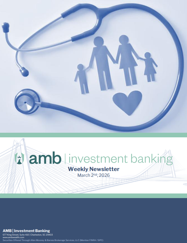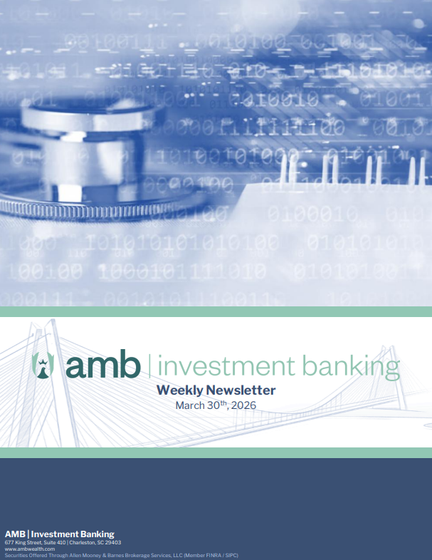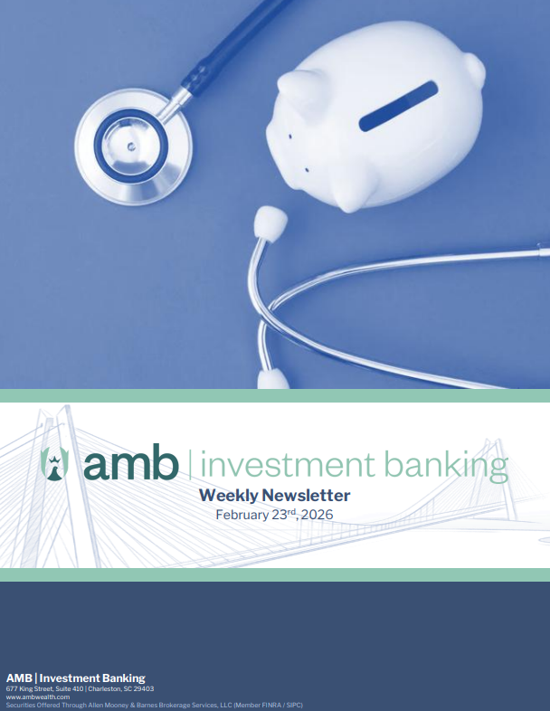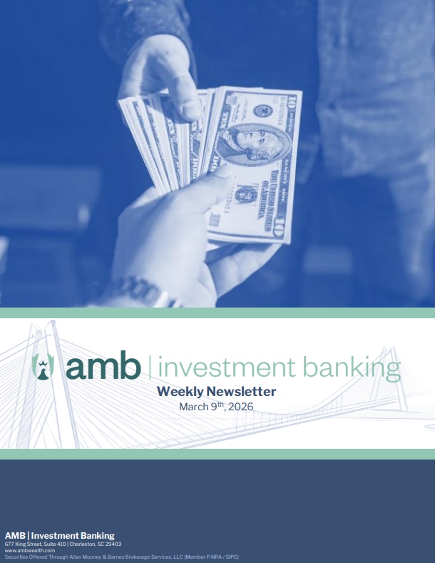 Please email us at info@AMBWealth.com if you would like to be added to our weekly investment banking e-blast.